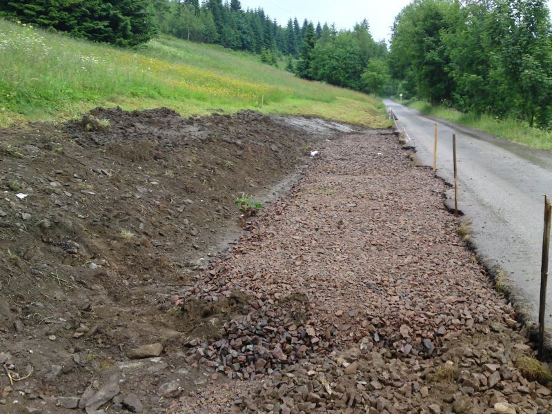Pro odborový svaz firmy ATAS a.s. Náchod jsme realizovali dle projektu odstavnou plochu pro pět vozů,která obsahovala zatrubnění příkopu,odtěžení zeminy,drenáže a štěrkovou konstrukci