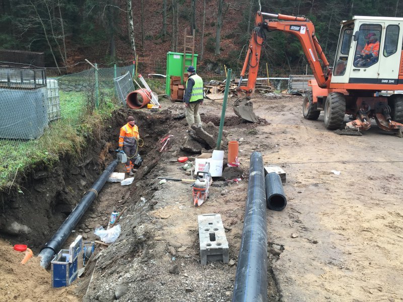 Zemní a montážní práce na venkovních rozvodech litina DN500,PEHD DN200