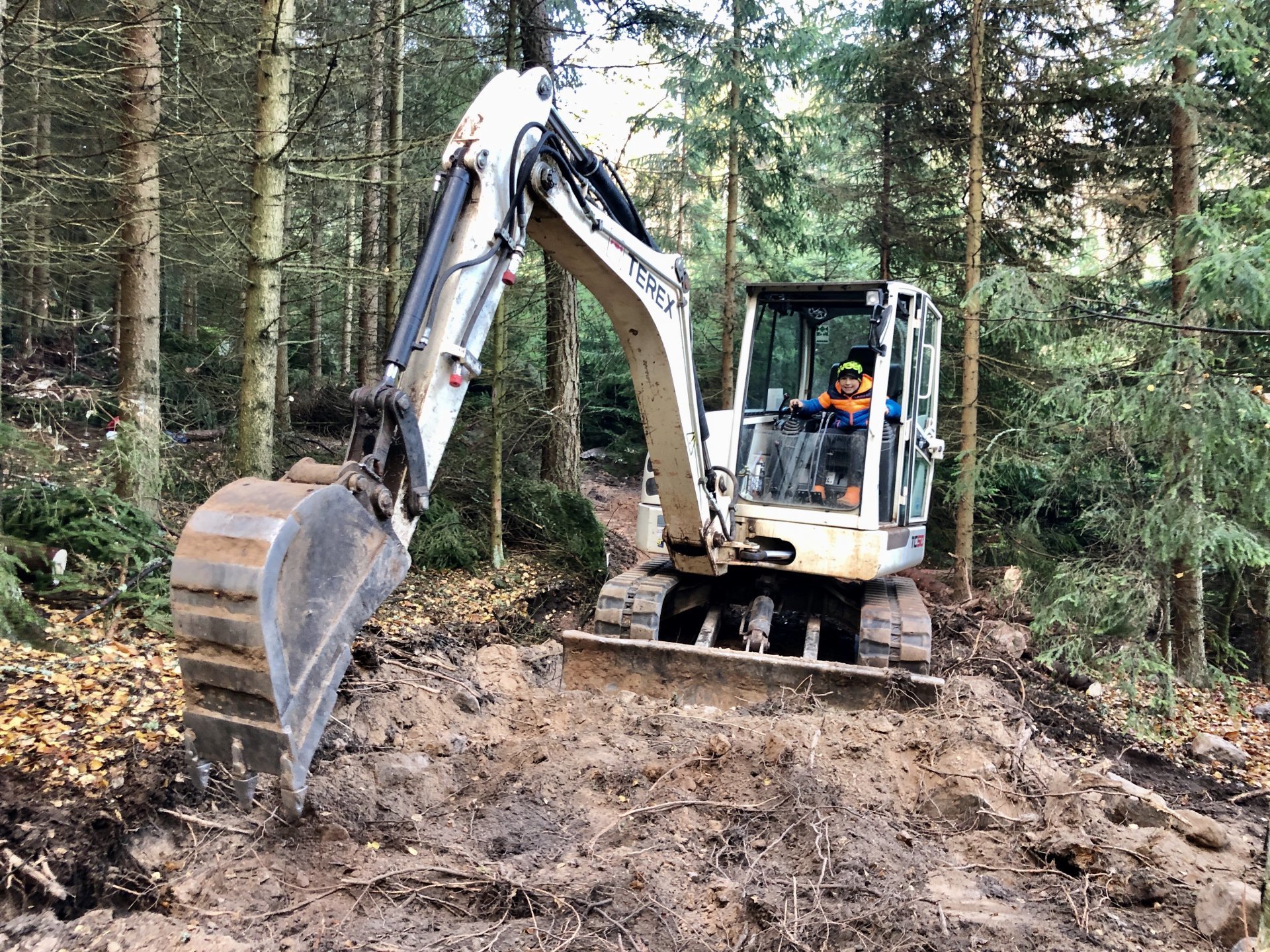 Zemní práce na vystavbě trailů Floutek, Boulder, Bunkr, Myší díra, Perníkový pod dohledem statných traťmistrů
